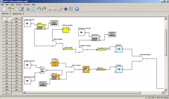 UWOT is a model that simulates urban water demands, to allow for optimal planning and assessment of distributed interventions in the urban water cycle. Unlike other urban water cycle models, which simulate urban flows, UWOT uses a bottom-up approach to simulate the generation and routing of the water demand signals that start from the demand point (i.e. the consumer’s tap) and are propagated all the way up to water sources (such as regional reservoirs) suitably translated, transformed and aggregated passing through the water infrastructure (distribution networks, supply networks, tanks and reservoirs). The use of a single model to simulate supply (reservoirs, aqueducts), distribution and consumption (end users), as well sewerage, drainage, WWTP and recipient waters is important as it allows options of reuse, synergies between flows as well as synergies with other infrastructure (energy) to be explored. The focus on demand signals is closely related to social behaviour, hence makes it easier to integrate UWOT with social simulation models (such as Agent Based Models). It can therefore account for a major part of a full socio-technical system at multiple scales.