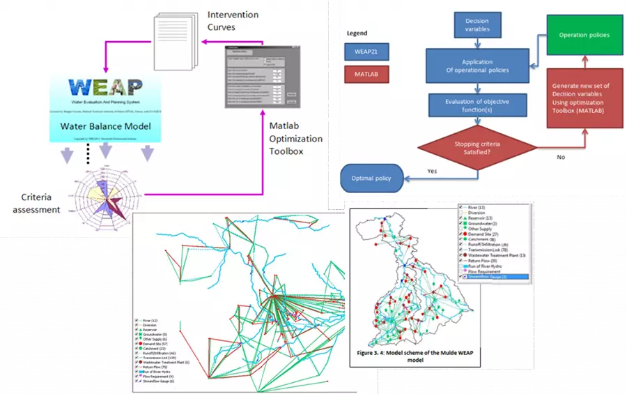 Key activity of UWMH in the ABOT project was the development of simulation-optimization (SO) framework (implemented in MATLAB) for water resources management. The framework was built by coupling a state-of-the-art water resources system model (i.e., WEAP21) and multi-objective evolutionary optimization algorithms (i.e., Genetic algorithms).